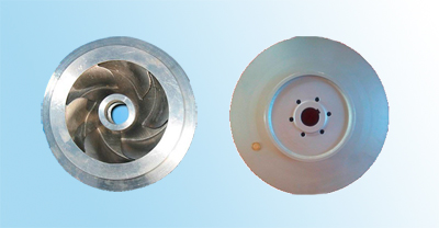 Los impulsores según muestra se reproducen conservando la hidráulica original, para que la bomba funciones con la misma curva característica de origen y en el mismo punto de trabajo que cuando se selecciono. Se entregan con una excelente terminación y pulido, cuidando detalles como los ángulos de ataque y descarga, forma del alabe, curvatura, pasaje y tolerancias de fabricación, posición y cantidad de agujeros de compensación del empuje axial o la forma de los alabes dorsales , cuando los posee, de esa forma se evitan turbulencias indeseables que ocasionan remolinos y perdidas de eficiencia. Se procura entregar un impulsor, cuerpo, tapa, etc., no solamente que funcione, sino que además lo haga con las condiciones para las que fue diseñado, lo que hace que la bomba mantenga sus prestaciones y valor